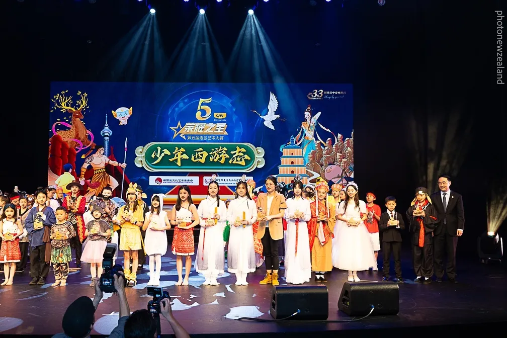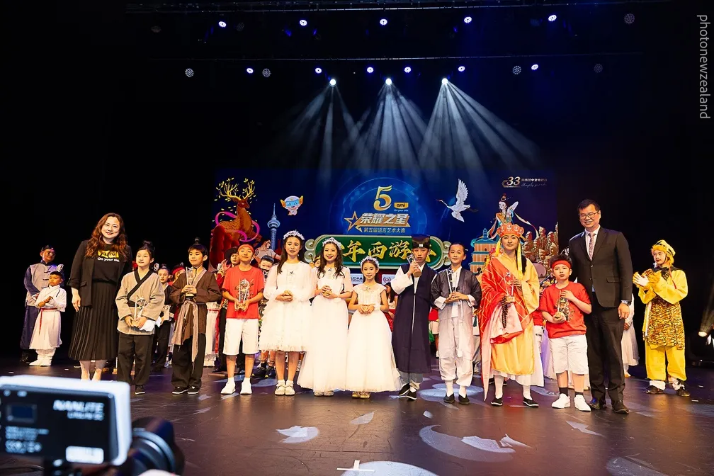 Jointly organised by the New Zealand Multiculture and Arts Exchange Centre and the New Zealand Culture and Arts Foundation, the event featured nearly 100 young performers showcasing language and artistic talent through the original stage show Stars of Glory – The Young Journey to the West.