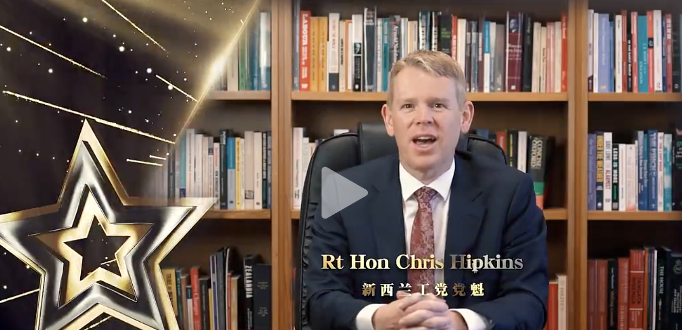 新西兰总理Christopher Luxon、工党党魁Chris Hipkins、青年发展部部长James Meager以及国会议员陆楠Nancy也通过视频送上亲切祝福,表达了对本届《荣耀之星》活动的高度肯定与真挚支持,为晚会增添了温暖与光彩。